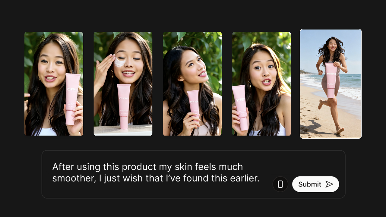 Add your own images, videos, and audio, generate consistent scenes with your characters and more. give any scripts to your AI influencer and let it perform.